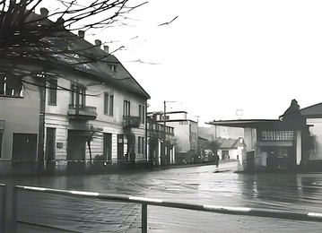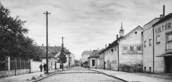 Ak by tieto budovy komunisti nezbúrali - na ich mieste dnes stojí Čapkáreň - videli by ste ich dnes z reštaurácie pod spoločenským domom aj z okien fitcentra Donald. V budove oproti kedysi fungovala opravovňa bicyklov a, ak si správne pamätám, zašívali tam aj poškodené futbalové lopty. Úzka cesta vľavo sa vtedy kľukatila smerom k námestiu. Opačným smerom by sme sa dostali k jednoposchodovej budove II. základnej školy pri vtedajšom dome osvety alebo po ceste mierne vpravo k benzínovej pumpe (dnes svetelná križovatka pri nadjazde).