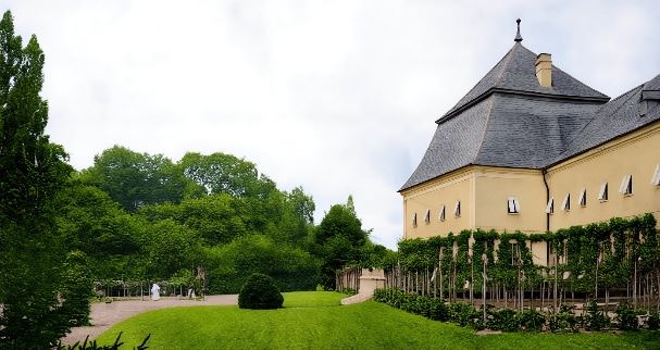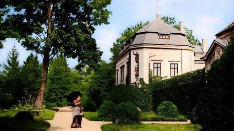 Severná strana kaštieľa, po prestavbe, je zaliata slnečným teplom a pôsobí harmonicky a pokojne. V parku "venčí" psa žena, ktorá sa chráni pred slnečnými lúčmi dáždnikom. Neprehliadnime starostlivo udržiavané chodníky, ktoré sú obklopené bohatou zeleňou, ktorá dotvára idylickú letnú atmosféru.
