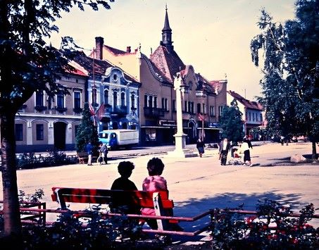 Námestie bolo plné zelene. V pamäti mi utkveli ošetrované záhony červených ruží, "ukryté" za červeným zábradlím. Ani ošarpané pozdĺžne schodíky mi vtedy neprekážali. Všetko spolu tvorí obraz, ktorý dnes vnímam ako nostalgiu za mladosťou.